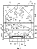 Подъемное устройство 46, которое показано на фигуре частично, имеет воздушный цилиндр или мотор, в качестве источника движения. Как показано на фиг.4, подъемное устройство 46 может поднимать анодный электрод 38 в положение, где образуется зазор G1 между анодным электродом 38 и маской 51, удалением анодных электродов 38 от маски 51 верхними крюками 60. Еще более того, как показано на фиг.5, подъемное устройство 46 может поднимать маску 51 в положение, где образуется зазор G2 между маской 51 и решеткой для распыления 37, удалением маски 51 от решетки для распыления 37 L-образными нижними крюками 61, присоединенными к опорным кронштейнам 57.