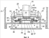 Резьбовые штифты подъемного устройства 58 вставлены в вакуумные сильфоны 59, расположенные между опорным кронштейном 57 и нижней стенкой вакуумной камеры 21, и, следовательно, сохраняется герметичность между нижней стенкой вакуумной камеры 21 и резьбовыми штифтами подъемного устройства 58.