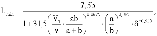 Минимальная длина большего из отрезков с учетом размеров водоворотной зоны может быть определена по формуле