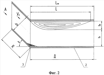 Длина выходного отрезка Д определяется размерами водоворотной зоны L вдоль по потоку, т.к. за ее пределами поток воды целиком заполняет сечение проточной части отрезка Д.