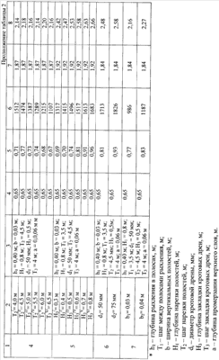 При уровне грунтовых вод 0,4-0,6 м глубокое рыхление в полосах 4 выполняют на глубину 0,30-0,35 м с шагом между полосами рыхления 1,6-1,8 м. Глубокое рыхление в полосах 4 проводят скобой, имеющей V-образную форму и толщину не более 16 мм. Пласт почвы и грунта подрезается, создавая V-образное сечение при минимальном тяговом сопротивлении. Шаг поделки полос 4 обусловлен вождением гусеничных тракторов класса тяга 3. Размещение рабочих органов V-образной формы позволяет за один проход нарезать полосу 4 в количестве 1, 2, 4 и 6.