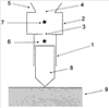 На казенную часть ствола 1 откатного артиллерийского орудия надет сосуд 2 с соплом 3. Между стволом 1 и сосудом 2 выполнено отверстие 3, соединяющее полые части в стволе 1 и сосуде 2 и выполненное меньше минимального из диаметров ствола 1 и минимального диаметра 4 сопла 5. В ствол 1 и сосуд 2 помещены пороховые заряды 6 и 7. Благодаря горению заряда 6 свая 8, помещенная в ствол 1, движется в грунте 9. Пороховые газы, образующиеся в результате горения заряда 7 в сосуде 2, вырываются через сопло 5, тормозя откатные части газодинамического строительного артиллерийского орудия. Благодаря прорыву пламени через отверстие 3 при горении зарядов 6 или 7 обеспечивается одновременное воспламенение пороховых зарядов 6 и 7 и выравнивание их скоростей горения, выбранные размеры отверстия 3 позволяют регулировать тягу, создающуюся в результате выброса пороховых газов из сопла 3 (см. чертеж.).