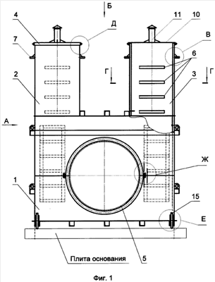На фиг.1 представлен общий вид предпочтительной конструкции колодца. Виды и разрезы на фиг.1 представлены: на фиг.2 – вид А; на фиг.3 – вид Б; на фиг.4 – вид В; на фиг.5 – разрез Г-Г; на фиг.6 – вид Д; на фиг.7 – вид Б; на фиг.8 – вид Ж. Вид И на фиг.2 показан на фиг.9.