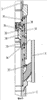 Верхние циркуляционные отверстия 15, снабженные седлами 16, перекрываются шариками 14, герметизируя трубное пространство технической колонны 3. Давление повышается выше рабочего, втулка 17 с внешним диаметром, равным диаметру трубного пространства, разобщая трубное пространство на две полости, за счет размещения во втулке 17 горизонтальной перегородки 18 позволяет создать максимальное осевое усилие, которое толкателями 19, установленными на нижнем торце втулки 17 по направляющим прорезям 20 ствола 21, передается на торец поршня 22 и раздвигающий конус 23 цанги 24, преобразует осевое усилие в радиальное, раздвигая цангу 24 до контакта со стенками эксплуатационной колонны 2.