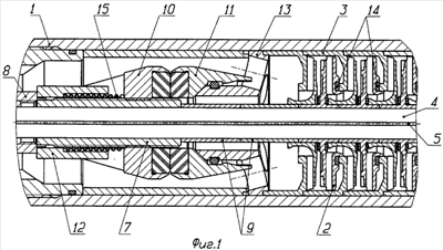 Таким образом, изобретение позволяет получить технический результат, выражающийся в обеспечении одновременного контакта пяты 10 с подпятником 11 и несилового контакта опорных шайб 14 рабочих колес 2 с направляющими аппаратами 3 в модуль-секциях с «компрессионной» схемой сборки.