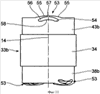 Ниже, со ссылкой на фиг.9-11, описывается третий пример исполнения. Конструктивно идентичные элементы имеют те же обозначения, что и в первом примере исполнения, на описание которого здесь указывается. Конструктивно различные, но функционально однотипные элементы имеют такое же обозначение с дополнительной буквой b . Основное отличие по сравнению с предыдущими примерами исполнения состоит в том, что для избежания резкого упора нажимного поршня 33b об упорное скрепление 27 и о дно колпачка 29 при экстремальных амплитудах колебаний предусмотрены упорные буферы 53. Упорные отрезки 38b, 43b нажимного поршня 33b имеют по четыре 39b и между пазами 39b расположенные клины 40b. Далее упорные отрезки 38b, 43b имеют по два упорных буфера 53, которые образованы на торцевых стенках клина 54 двух противолежащих друг другу клинов 40b. Упорные буферы 53 первого упорного отрезка 38b расположены смещенно относительно центрально-продольной оси 14 к упорным буферам 53 второго упорного отрезка 43b.