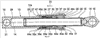 Для ограничения движения нажимного поршня 33 с покрытием фрикционного демпфирования 36 и для достижения действия демпфирования узел фрикционного демпфирования 32 имеет первый упорный элемент 44 со стороны корпуса и второй упорный элемент 45 со стороны штока. Первый упорный элемент 44 включает несколько упорных выступов, которые исходя от упорного скрепления 27 корпуса 13 располагаются вдоль центральной продольной оси 14. Упорный выступ 46 первого упорного элемента 44 образован заодно с упорным скреплением 27 и направляющим отрезком 23 корпуса 13. Возможно также предусмотреть образование из двух частей, при необходимости из различных материалов. Упорные выступы 46 расположены и образованы таким образом, что они образуют удлинение направляющего отрезка 23, так что шток 15 проводится дополнительно через упорный выступ 46 первого упорного элемента 44. Упорные выступы образованы и расположены таким образом, что нажимной поршень 33 с пазами 39 первого упорного отрезка 38 может охватывать упорные выступы 46, так что нажимной поршень 33 может передвигаться в первом промежуточном пространстве 47 между приемным отрезком 24 и упорным выступом 46. Подробное описание упорных выступов 46 и их расположение следует ниже в связи с описанием второго упорного элемента 45.
