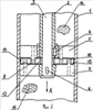 На фиг.1 показан гидравлический демпфер в продольном разрезе, на фиг.2 – такой же разрез, но его плоскость расположена повернутой на угол 180°, на фиг.3 – лопастное колесо в перспективе, на фиг.4 – вид на торцевую часть поршня, закрепленную на сплошном штоке, и на фиг.5 – вид на торцевую часть поршня, закрепленную на полом штоке.