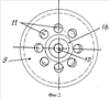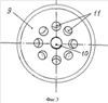 Структура клапана электромагнитного прямоточного приведена на фиг.1 (разрез по оси симметрии), на фиг.2 изображен дисковый якорь (вид сверху), фиг.3 – дисковый якорь (вид снизу), на фиг.4 показан разрез электромагнитного привода клапана по плоскости А-А.