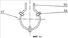 Еще один пример выполнения газовой соединительной арматуры показан на фиг.9-11. В этом примере выполнения, который в остальном по существу соответствует описанным выше, выходной штуцер 6 в области своего дальнего от основного корпуса 2 конца снабжен окружной канавкой 14, в которой находится представленный на фиг.11 проволочный кольцевой элемент 47. Он имеет две параллельные отогнутые ножки 50, которые входят в воронкообразный направляющий конус 58 фиксирующей задвижки 41, в свою очередь имеющей опору, как и раньше, в кулачковом гнезде 40 переключателя 35. На круговой участок проволочного кольцевого элемента 47 надеты несколько стопорных роликов 59, – в данном примере выполнения три ролика. Эти стопорные ролики 59 помещены в радиальных направляющих проточках, проходящих во внутреннюю полость выходного штуцера 6. По монтажным соображениям эти направляющие проточки образованы осевыми прорезями 60 выходного штуцера 6.