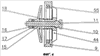На дальнем от основного корпуса 2 конце выходной штуцер 6 снабжен несколькими радиальными сверлениями 28 (фиг.1, 7), которые распределены по окружной поверхности, но находятся в одной плоскости. В каждом сверлении 28 расположен стопорный шарик 29, частично выступающий в соединительное отверстие 30 выходного штуцера, причем выпадение стопорных шариков 29 предотвращается за счет уменьшения диаметра сверления 28 в направлении соединительного отверстия 30.