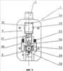 Выступающий внутрь основного корпуса 2 конец выходного штуцера 6 образует седло 22 для запорного устройства 23, запорное тело 24 которого установлено в основном корпусе 2 на направляющем элементе 25 подвижно вдоль оси выходного штуцера 6, а следовательно, и относительно седла 22. При этом запорное тело 24 подпружинено в направлении закрытого положения с помощью запорной пружины 26, которая одним концом опирается на внутреннюю стенку основного корпуса 2, а другим концом – на запорное тело 24. Для обеспечения газонепроницаемости служит кольцо 27 круглого сечения, установленное на запорном теле 24 и прижимающееся в запорном положении к седлу 22. Своим осевым продолжением 56 запорное тело выступает в выходной штуцер 6.