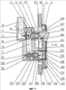 Крышка 3 показана на фиг.2 на виде спереди. На передней стороне крышки 3 имеется продольное окно 49, причем за частью этого окна 49 находится соединительное отверстие 30 выходного штуцера 6, и сквозной проем 64 для переключателя 35, который будет подробно описан далее. Между крышкой 3 и монтажной панелью 4 расположена заслонка 51, установленная с возможностью перемещения в направлении своей длины.