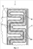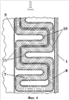 В каждой ширме внутренняя и наружная ветви 7 и 8 выполнены по длине из поворотных участков 10 и 11, расположенных с чередованием через один со стороны стенки корпуса 1 и вытеснителя 9, при этом поворотные участки 10 внутренней ветви 7, расположенные со стороны стенки корпуса 1, установлены внутри аналогичных поворотных участков 10 наружной ветви 8, а поворотные участки 11 наружной ветви 8, расположенные со стороны вытеснителя 9, установлены внутри аналогичных поворотных участков 11 внутренней ветви 7.