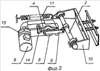 В пружинном аккумуляторе 11 применена пружина растяжения, один конец которой закреплен за палец на щеке вилки 10 держателя мишени, а второй – за кронштейн на корпусе 1.