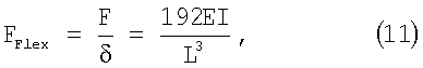 Коэффициенты, которые влияют на жесткость при изгибе, сказываются также на чувствительности кориолисового расходомера (калибровочный коэффициент потока). Жесткость при изгибе представляет собой статическую жесткость пружины, получаемую при изгибе расходомерной трубы силами с известной схемой приложения и при измерении отклонения расходомерной трубы. Для измерения жесткости при изгибе можно воспользоваться любой схемой приложения сил при условии ее инвариантности. Например, жесткость при изгибе для защемленной балки определяется следующим образом: