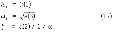 где a(1)=1. Представляющие интерес параметры моды получают из модели передаточной функции следующим образом: