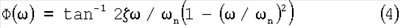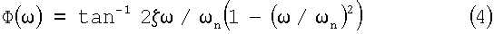 На фиг.4A представлены кривые амплитудно-частотных характеристик для трех разных значений коэффициента затухания, а на фиг.4B представлены три кривые соответствующих фазочастотных характеристик. Три кривые отражают коэффициенты затухания =0,05, =0,1 и =0,2. Поэтому из графиков можно видеть, что коэффициент затухания можно связать и вывести из фазы и амплитуды колебательных характеристик на, по меньшей мере, двух частотах 1 и 2.