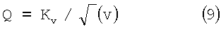 где Kv означает коэффициент пропорциональности, который поделен на корень квадратный из вязкости v. Это предполагает, что способ, который позволяет расходомеру 5 измерять коэффициент затухания системы (или, что эквивалентно, ее коэффициент добротности Q), будет давать динамическую вязкость v, при соответствующей калибровке.
