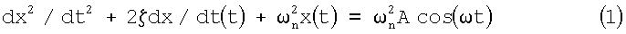 где правая часть представляет нормированную силовую функцию колебаний, и означает коэффициент затухания. В данном уравнении x означает мгновенное отклонение расходомерной трубки и члены dx/dt и dx2/dt2 представляют производные первого и второго порядка отклонения соответственно.