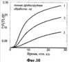 на фиг.9 – зависимость производной термодинамической температуры Т от времени t для случаев, соответствующих фиг.7;