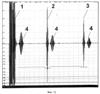 1. Сигналы на выходе широкополосного приемника имеют значительно (иногда в несколько раз) более короткую “мертвую зону”. На фиг.1 зондирующий импульс намного короче, чем аналогичный на фиг.2. Из-за этого один из импульсов, обусловленных несплошностью, видимый на фиг.1, «пропал» в «мертвой зоне» на фиг.2 (первый после зондирующего импульса).