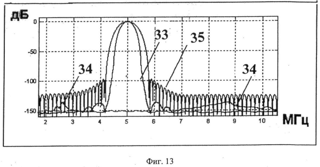 Фиг.13. Спектр сигнала, отфильтрованного и обработанного устройством, показанным на фиг.6.