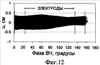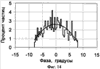 Другой особенностью прохождения пучка заряженных частиц через спиральный инфлектор является появление дополнительного продольного размера пучка. Эта особенность связана с различной длиной пути, который проходят заряженные частицы пучка при повороте в инфлекторе. В рассматриваемом примере продольный размер тестового пучка на входе в инфлектор взят равным нулю. При прохождении спирального инфлектора продольный размер тестового пучка увеличивается до ±11° от фазы ускоряющего ВЧ-напряжения, фиг.9. Увеличение продольного размера пучка приводит к уменьшению эффективность ускорения в циклотроне. Представленное поведение пучка при прохождении спирального инфлектора является характерным для любой формы пучка на входе в инфлектор.