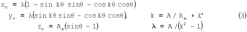 Траектория центральной частицы в спиральном инфлекторе представлена системой уравнений в системе координат, привязанной к центру циклотрона: