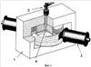 Фиг.1. Схема циклотрона с системой аксиальной инжекции и спиральным инфлектором, где цифрами отмечены: