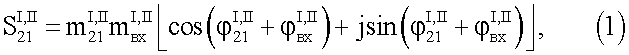 Запишем указанные физические величины в двух состояниях в комплексной форме ; (модуль АФМС в двух состояниях различен); . Таким образом на выходе высокочастотной части демодулятора модули коэффициента передачи и входного сигнала перемножаются, а их фазы складываются. Выходные напряжения в двух состояниях связаны между собой следующим образом: