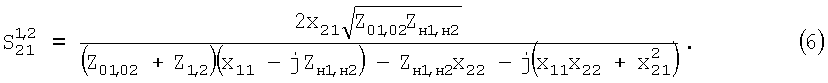 Используя известные соотношения между элементами классической матрицы передачи и элементами матрицы рассеяния [Фельдштейн А.Л., Явич Л.Р. Синтез четырехполюсников и восьмиполюсников на СВЧ. М.: Связь, 1971, с.39] с учетом (2) получим выражения для коэффициентов передачи: