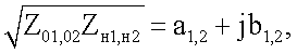 zн1,н2=rн1,н2+jxн1,н2 и источника сигнала z01,02=r01,02+jx01,02 на крайних значениях частоты АФМС известны.