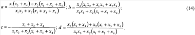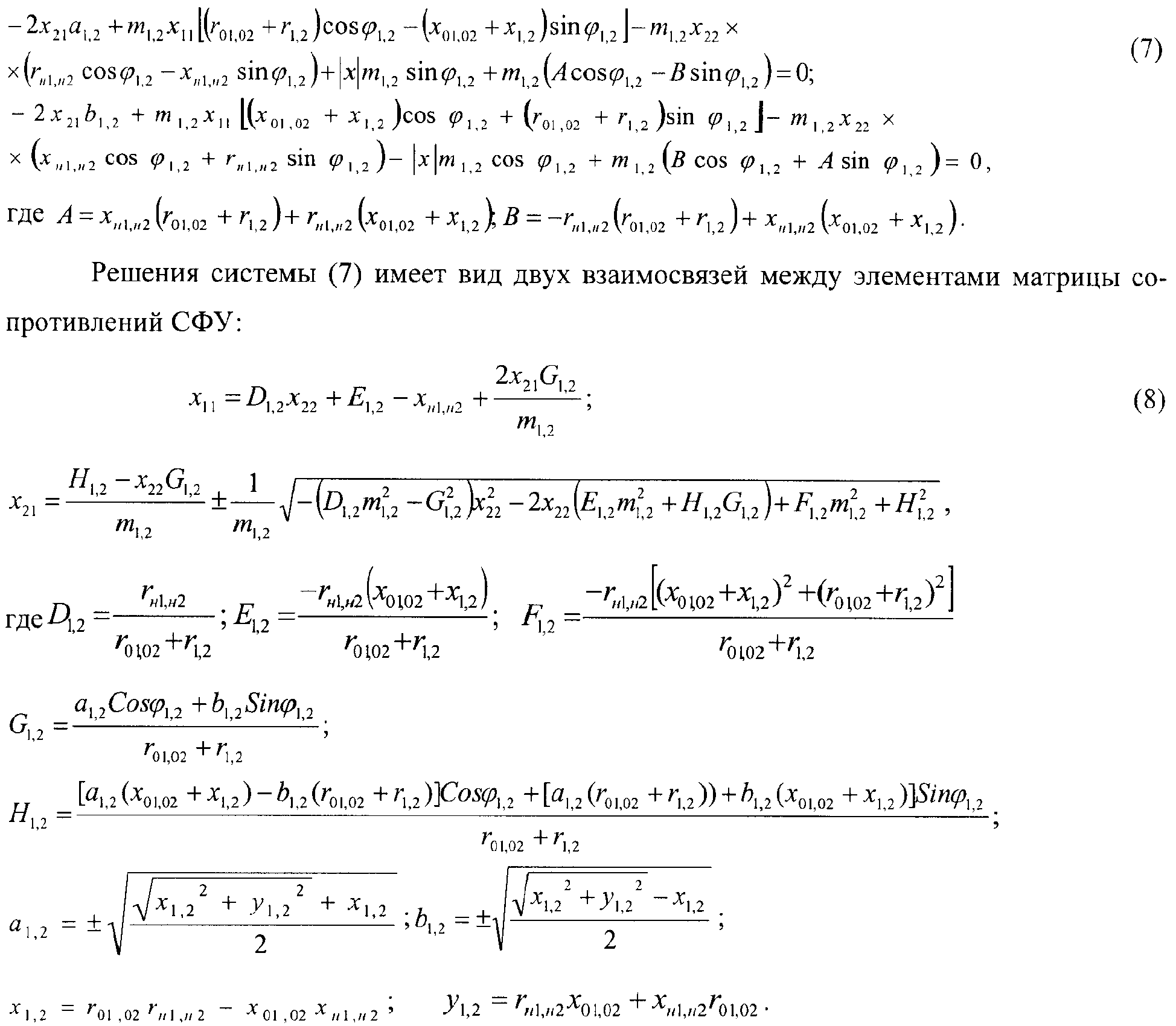 В формулах (16) xk – это реактивное сопротивление k-го двухполюсника (k=1, 2, 3, 4), входящего в СФУ, значение которого определяется по изложенному выше алгоритму (15).
