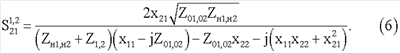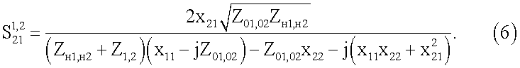Используя известные соотношения между элементами классической матрицы передачи и элементами матрицы рассеяния [Фельдштейн А.Л., Явич Л.Р. Синтез четырехполюсников и восьмиполюсников на СВЧ. М.: Связь, 1971. с.39] с учетом (2), получим выражения для коэффициентов передачи: