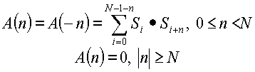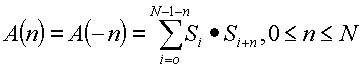 где A(n) является двусторонней апериодической автокорреляцией расширяющей последовательности, определенной как: