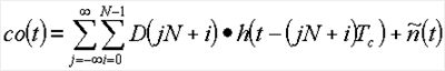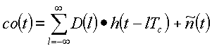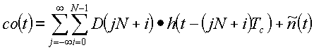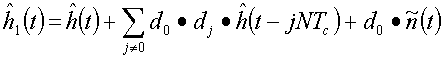 Для простоты обозначения мы введем (отрицательную) групповую задержку (lTc) при вычислении выходного сигнала 118 коррелятора. Выходной сигнал коррелятора 116 дается сверткой корреляционной функции D(l) с дискретизированной передаточной функцией h(t-lTc) канала связи плюс шумовой компонентой . При дальнейшем исследовании: