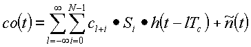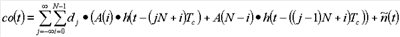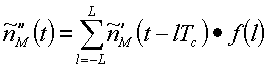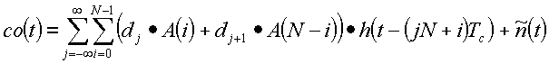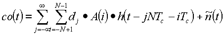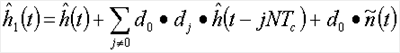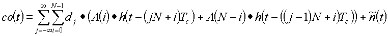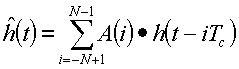 где далее определяется как свертка апериодической автокорреляционной функции A(i) расширяющей последовательности и дискретизированная передаточная функция h(t-iTc) канала: