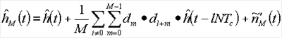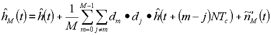 Поэтому в пределе бесконечного суммирования (поскольку М стремится к бесконечности) мы получаем оценку, которая равняется истинной передаточной функции h(t) канала, свернутого с апериодической автокорреляционной функцией расширяющей последовательности Si 104.