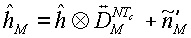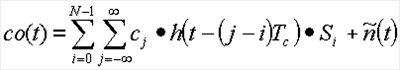 Эта расширенная последовательность cj 106 элементарных сигналов передается через линейный канал 108 передачи, имеющий объединенную передаточную функцию h(t) канала. Передаваемый сигнал принимается приемником 112. Принимаемый колебательный сигнал r(t) 114 равняется: