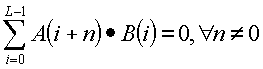 Бесконечная последовательность А формирует импульсивную корреляционную пару с бесконечной последовательностью В, длиною L, если А удовлетворяет следующим уравнениям: