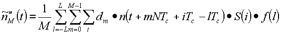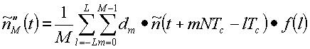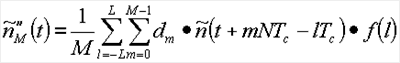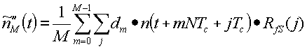 Это является грубым приближением к , искаженным наложенными копиями , расположенными с интервалами на множестве NTc от желаемой копии. Эти наложения и дополнительные шумовые элементы могут быть уменьшены через дальнейшее суммирование через М кодовых периодов: