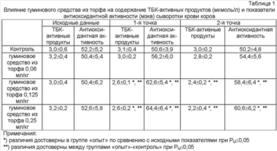 Изобретение относится к животноводству и ветеринарии. Способ включает введение в состав рациона гуминового средства из торфа. При этом в качестве гуминового средства из торфа применяют средство, полученное путем обработки торфа 1,0%-ным раствором водного аммиака и 1,75%-ным раствором перекиси водорода в соотношении 1:5:5 при нагревании до 140°С. Полученный маточный раствор разводят до 1%-ного содержания гуминовых кислот и применяют ежедневно один раз в сутки в дозе 0,125-0,25 мл/кг живой массы двумя курсами продолжительностью 25-28 дней. Интервал между окончанием предыдущего курса и началом последующего составляет 60 дней, а первый курс начинают за один месяц до отела коров. Способ позволяет снизить уровень заболеваемости печени животных и риск развития патологических отелов. 2 табл.