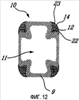 В еще одном варианте несколько канавок 12 может проходить поперечно в направлении смежной канавки так, чтобы полностью покрывать одну или более поверхностей рукоятки 10 либо частично, либо полностью, как показано на фиг.22 и 23, тем самым создавая амортизатор 14, который может служить рукоятью. На фиг.24 показан изометрический вид канавки 12, соответствующей фиг.22.