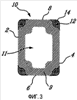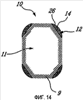 Фиг.11-14 иллюстрируют сечения прямоугольных рукояток спортивных снарядов по другим вариантам настоящего изобретения, содержащие разные примеры возможной геометрии канавок на всех четырех кромках.