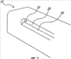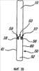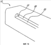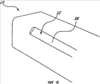 На фиг.37 в увеличенном масштабе показана первая поверхность 22 и вторая поверхность 23 канавки 12. Как показано на чертеже, на первой поверхности 22 выполнена группа углублений 40 и 42. Понятно, что эти углубления могут облегчать соединение эластомерного материала амортизатора 14 (не показан) с поверхностью 22. Наличие таких углублений может, например, продлить срок службы амортизатора, сократить или устранить необходимость в каких-либо связующих агентах или по существу улучшить ремонтопригодность и стойкость амортизатора к ударам. Альтернативно, как показано на чертеже, поверхность 23 имеет группу выступов 44 и 46, которые выступают наружу из этой поверхности. Выступы 44 и 46 могут служить для той же цели, что и углубления 40 и 42, облегчая соединение эластомерного материала с поверхностью. Понятно, что геометрия, расположение и конфигурация выступов 44 и 46 и/или углублений 40, 42 могут меняться и, далее, понятно, что не все поверхности 22 и 23 могут ими снабжаться. Далее, любая из поверхностей 22 и 23 может снабжаться углублениями и выступами или любой требуемой комбинацией. Кроме того, углубления и/или выступы показаны расположенными продольно, т.е. в направлении рукоятки, однако, следует понимать, что такие выступы 44 и 46 и углубления 40, 42 могут проходить поперек продольного направления рукоятки или под углом к нему. Наконец, выступы 44 и 46 и углубления 40, 42 могут быть дискретными по размеру и проходить зигзагообразно вдоль поверхности 22 и/или вдоль поверхности 23.