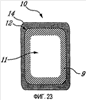 Фиг.22 и 23 иллюстрируют сечения прямоугольных рукояток спортивных снарядов по другим вариантам настоящего изобретения, содержащие множество канавок или с полным покрытием поверхности рукоятки.