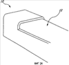 Альтернативно, канавка 12 может содержать более двух поверхностей, например, на фиг.9 показана канавка, имеющая три поверхности: первую поверхность 22, по существу перпендикулярную большой поверхности 4, вторую поверхность 23, по существу перпендикулярную малой поверхности 8, и третью поверхность 26, расположенную между первой поверхностью 22 и второй поверхностью 23, например, диагонально. Однако третья поверхность 26 может быть криволинейной, т.е. вогнутой. Канавка 12 также может содержать одну поверхность 26, пересекающую большую поверхность 4 и малую поверхность 8 под углом более 90°, как показано на фиг.10. Как показано на фиг.10, угол между первой поверхностью 22 и второй поверхностью 23 составляет по существу 180°. Хотя каждая из первой поверхности 22, второй поверхности 23 и третьей поверхности 26 на чертежах показана по существу плоской, настоящее изобретение может также содержать варианты, где одна, две или все три из первой, второй и третьей поверхностей 22, 23, 26 могут быть криволинейными как продольно, так и поперечно, в соответствии с необходимостью или желанием. Например, поверхности могут быть либо вогнутыми, либо выпуклыми. Далее, можно использовать комбинацию плоских и криволинейных поверхностей (т.е. продольно криволинейных), а также комбинацию вогнутых и выпуклых форм (т.е. поперечно вогнутых или выпуклых, а именно под прямым углом к длине рукоятки).