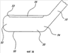 На фиг.38 показано еще одно применение настоящего изобретения. К рукоятке 10 хоккейной клюшки прикреплен крюк 50. Крюк 50 содержит передний участок 52 и задний участок 54, который примыкает к нижней части рукоятки 10. Крюк 50 далее содержит верхнюю поверхность 53 и нижнюю поверхность 55, которая контактирует со льдом, когда клюшка находится в игре. Верхняя поверхность 53 содержит канавку, проходящую по существу вдоль всей длины верхней поверхности 53. Канавка заполнена амортизатором 56, предназначенным для поглощения удара по верхней поверхности 53 крюка 50. Хотя амортизатор 56 показан проходящим вдоль лишь части верхней поверхности 53, он может проходить вдоль всей ее длины. Альтернативно, амортизатор 56 может быть установлен на нижней поверхности 55.