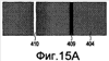 Фиг.15A и 15B изображают диаграммы, иллюстрирующие тестовый фрагмент 404 в случае со смещением из-за наклона и матрицей точек тестового фрагмента 404. Когда имеется смещение из-за наклона, тестовый фрагмент 404 дает черную полосу 409 и белую полосу 410, как показано на фиг.15A. Черной полосе 409 и белой полосе 410 на фиг.15B соответствует часть 413, где точки накладываются (перекрываются), и часть 414, где не имеется точек. Когда имеется смещение из-за наклона, имеется смещение L в главном направлении сканирования между точками 408 стороны вверх по движению и точками 415 стороны вниз по движению, как показано на фиг.16. Для тестового фрагмента 404 точечное изображение 412 при втором сканировании записывается между двумя точечными изображениями 411, записанными при первом сканировании. Соответственно, как можно видеть на фиг.15B, это приводит к тестовому фрагменту с черной полосой 409 и белой полосой 410, как показано на фиг.15A, из-за частей с накладывающимися точками или без точек между точечным изображением 411 и точечным изображением 412. Таким образом, смещение из-за наклона приводит к белым и черным полосам в стандартном тестовом фрагменте 404.